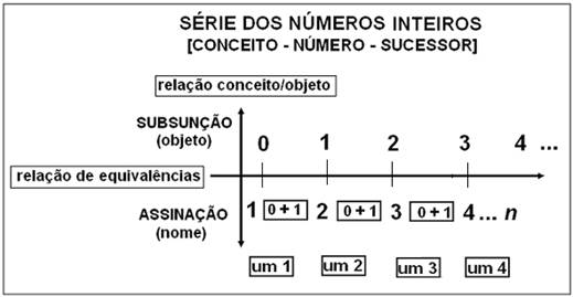 Teremos então que, na operação Sucessor o Um que é adicionado ao número não é somente o Um da unidade comum a todos os números, o que aparece nessa passagem de um número a outro é a soma do Um em sua dupla vertente: da unidade e da diferença. Assim podemos ver (0, (0+1)=1, (0+1)=2, (0+1)=3, (0+1)=4,......n) que o Um aí adicionado contém o símbolo originário da emergência da falta ao campo da verdade, uma transgressão que vai se produzir sempre, na passagem do número a seu Sucessor, um efeito de sentido. É essa a diferença que Frege revela no nome de um número como extensão de sua unidade, ou seja, a diferença do que ele subsume como objeto e do que assina como nome.