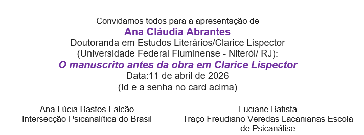 Intersecção Psicanalítica do Brasil reúne psicanalistas e estudiosos da Psicanálise em torno da transferência a Sigmund Freud e a Jacques Lacan, a partir da inscrição em nome próprio e da produção de cada participante.